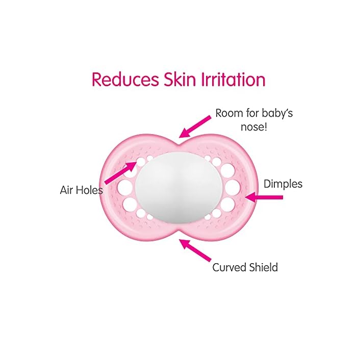 SILICONE NIPPLE – The BPA-free silicone nipple is a signature MAM pacifier design, with silky SkinSoft material and a symmetrical shape that’s ideal for jaw and teeth development.