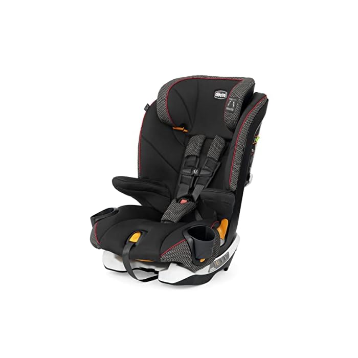 The Chicco MyFit harness + belt-positioning car seat is designed to grow with your child from a toddler car seat to a big kid booster, easily transitioning from 5-point harness to vehicle seat belt. Nine headrest positions accommodate growth throughout both modes and work together with a 4-position recline to support proper posture. An extra-deep ErgoBoost seat with dual-density foam padding is sloped and contoured for superior comfort.