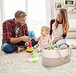 Conthfut Baby Diaper Caddy Organizer 100% Cotton Rope Nursery Storage Bin for Boys and Girls Large Tote Bag & Car…