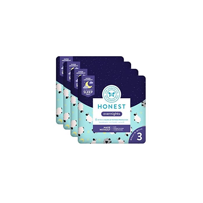 Honestly Secure Fit: Soft, stretchy side panels, comfy elastic waistband, sure-fit leg cuffs and fastening tabs for a fitted diaper that’s gentle on your baby’s skin while stopping those nighttime leaks – sweet dreams!