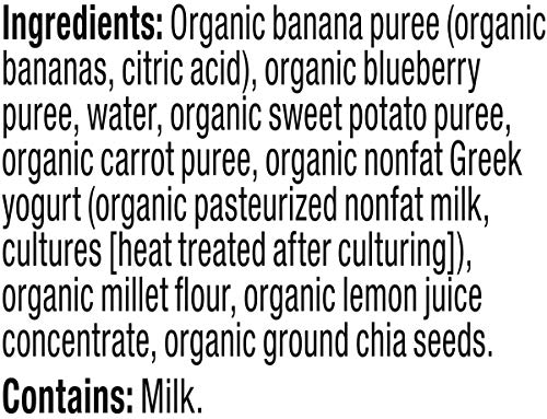 Ships as a 12-pack of 4-ounce pouches (Banana, Blueberry, Sweet Potato, Carrot, Greek Yogurt and Millet)
