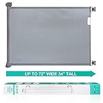 Retractable Baby Gates for Staris – PRObebi Retractable Dog Gate, Indoor Safety Gate Extends to 72″ Wide 34″ Tall, Extra Wide Baby Gate, Mesh Gate for Doorways, Hallways, Outdoor, Grey