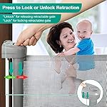 【Retractable Design & Easy to Store】- This retractable mesh gate for stairs extends up to 72″ wide and 34″ tall. They are easy to roll up when not in use. The plus side of retractability is that they can be used in tight areas like an entryway or in an old house with tight hallways, where a swinging gate would simply get in the way. They are also a good choice for a relative who might want a gate for young kids’ visits, but doesn’t want to deal with it all the time.