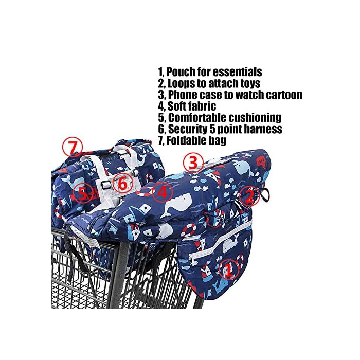 PROTECT YOUR LITTLE ONES- Use this cover to prevent your baby from coming into direct contact with dirty seats, straps, or handles, especially while teething. This large padded shopping cart cover reaches 30% more surface area & is easy to attach to most carts/chairs with the extra ties attached to ensure your baby is safely secured to those “extra” large carts.